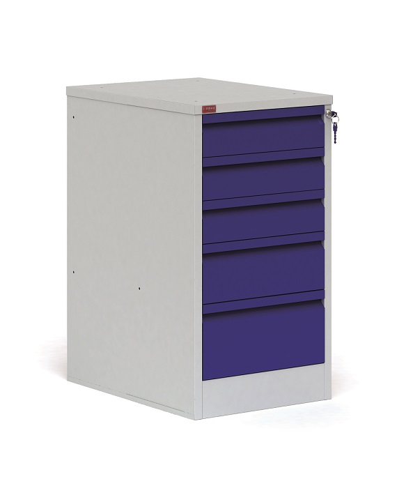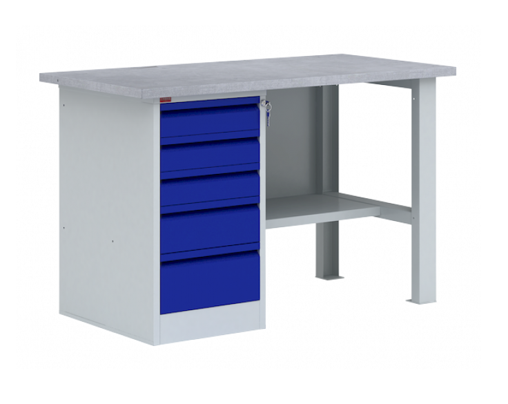 Металлические слесарный верстак ВП-3Т/1,2 представляет собой рабочий стол для ручной обработки металлических, деревянных изделий, а также предметов, выполненных из других материалов. Металлический верстак используется в мастерских, гаражах, автосервисах и в других рабочих зонах. Он являются основой, как небольшого промышленного производства, так и крупного предприятия. Допустимая равномерно распределенная нагрузка на верстак - 1000 кг, на полку верстачную - 40 кг, на выдвижной ящик - 30 кг. В комплект верстака ВП-3Т/1,2 входит: столешница СТ-2 из МДФ, покрытая оцинкованным листовым металлом, стенка задняя металлическая, металлическая верстачная опора, тумба Т-2Т с пятью выдвижными ящиками на телескопических направляющих. Тумба закрывается центральным ключевым замком. Тумбу можно установить как с левой, так и правой стороны верстака. Дополнительно на верстак можно установить перфорированный экран соответствующего размера, аксессуары на экран. Цвет: верстак - серый Ral 7035, дверь тумбы - синий Ral 5002