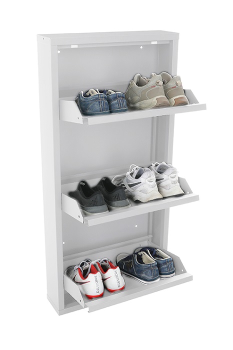 Обувница Практик ОМ-3 белая предназначена для хранения обуви. Обувница состоит из трех отделений, каждое отделение вмещает 2 пары обуви (до 43 размера). Изготовлена из стали, поставляется в собранном виде. Цвет: белый Ral 9003. Тип покрытия: порошковое