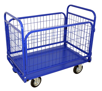 Тележка ТС-1 используется для перевозки товаров и грузов. Распределенная нагрузка на тележку до 550 кг с диаметром колес 200 мм, до 450 кг с диаметром колес 160 мм и до 300 кг с диаметром 125 мм. Комплектуется ручкой, съемными сетчатыми бортами, площадкой для установки колесных опор, комплектом колес с диаметром 125 мм. Каркас тележки изготовлен из трубы 30 мм, настил металлический лист 1 мм, ручка изготовлена из трубы 30 мм, заполнение трубы 25 мм. Высота сетчатых бортов 500 мм, сетка 100х50 мм. Возможен другой размер платформ (шириной от 500 мм до 800 мм и глубиной от 800 мм до 1800 мм) и диаметр колес (200 мм, 160 мм). Цвет - синий. Тип покрытия - полимерно-порошковое. Полимерно-порошковое покрытие позволяет работать на открытом воздухе при атмосферных осадках